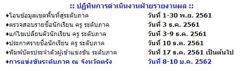 ปฏิทินการปฏิบัติงานการแข่งขัน ระดับเขตพื้นที่